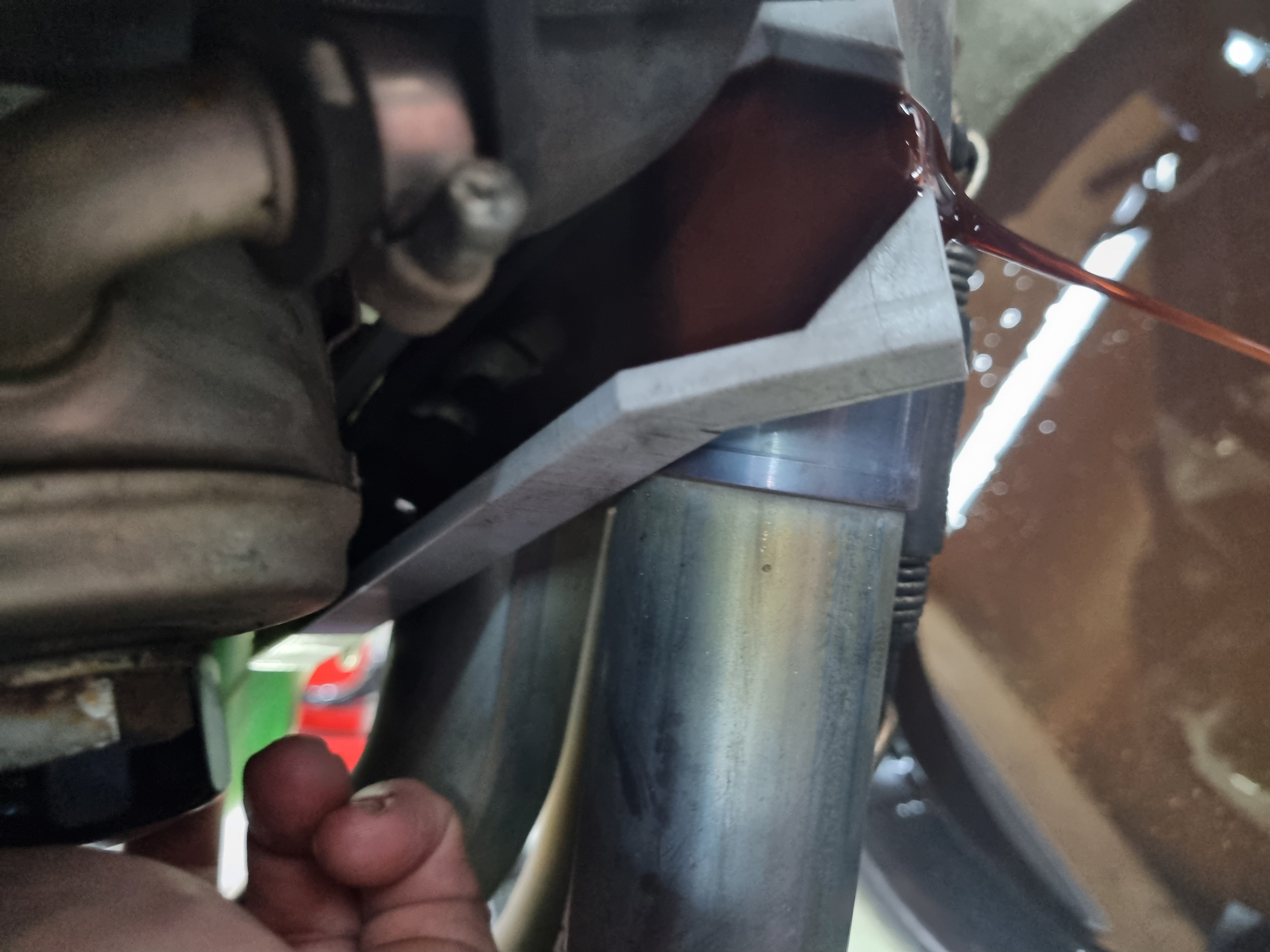 In my job as a motorcycle mechanic I often encounter motorcycles that have their oil filter mounted over the exhaust pipes. A strange design, and it is always a messy job to remove the filter. With the hands on a 3d printer, I came up with the idea to create a catcher box that canĀ be put over the (cold) exhaust and catch the oil and reroute it so I can catch it in the oil pan.